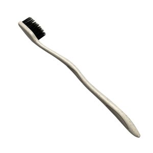 Bàn chải khách sạn có màu trắng ngà với các đốm nhỏ màu nâu nhạt, có thiết kế đơn giản và thân thiện với môi trường. Phần đầu bàn chải có lông mềm màu trắng, được sắp xếp gọn gàng để làm sạch răng hiệu quả.