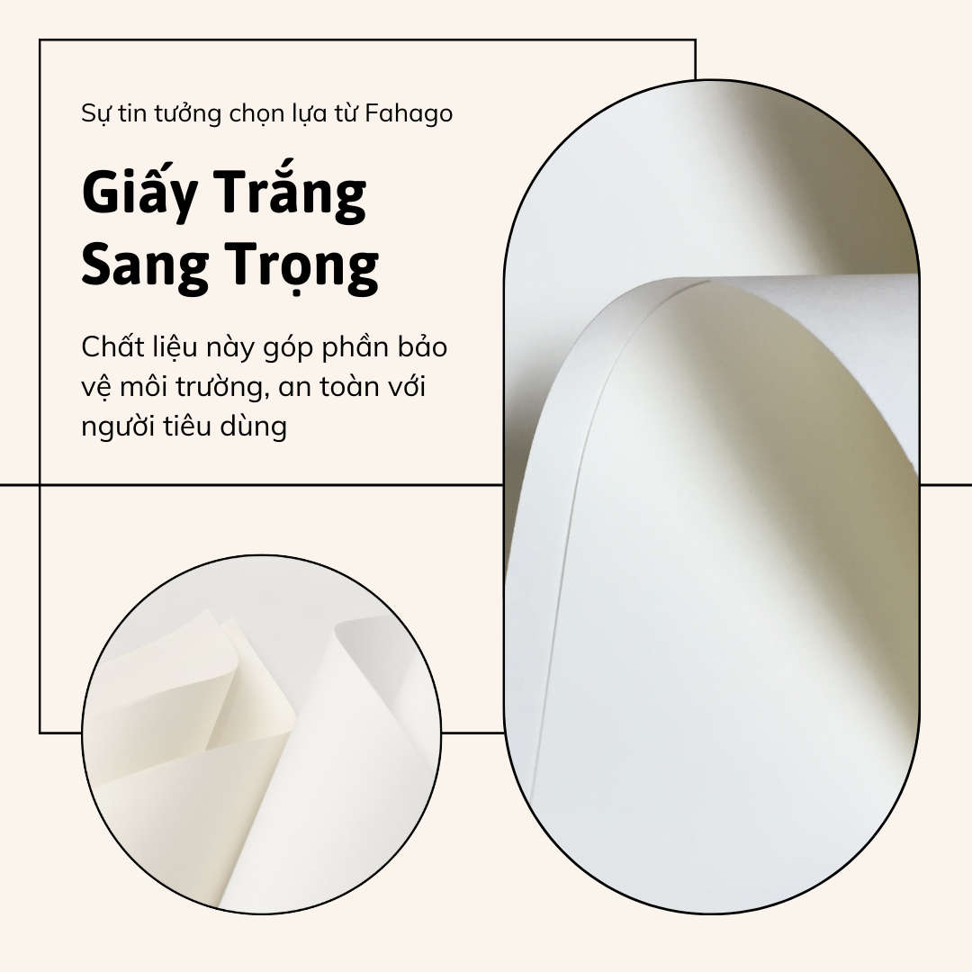 Bao bì túi giấy trắng in 2 màu nhìn rất tinh tế, màu sắc rõ ràng và không bị lem. Giấy dày dặn, khách lưu trú của mình phản hồi rất tích cực về sự chỉn chu này.