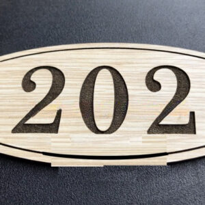 Biển số phòng khách sạn gỗ khắc laze có thiết kế hình bầu dục với viền khắc quanh, tạo nên nét tinh tế và phong cách độc đáo. Chất liệu gỗ tự nhiên, màu sắc trầm ấm kết hợp với công nghệ khắc laze hiện đại giúp tạo ra những đường nét sắc sảo và bền bỉ. Số phòng được khắc sâu vào bề mặt gỗ, tạo ra sự tương phản rõ rệt giữa phần khắc và phần nền gỗ, giúp dễ dàng nhận diện.