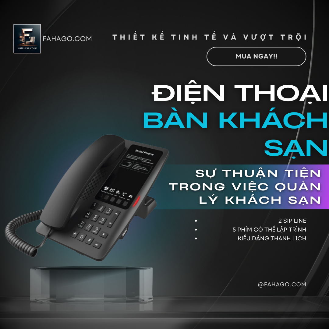 Điện thoại bàn khách sạn FANVIL-H4W là một sản phẩm hiện đại và tiện ích, giúp nâng cao chất lượng dịch vụ và trải nghiệm của khách hàng. Với thiết kế sang trọng và nhiều tính năng tiên tiến, điện thoại này là sự lựa chọn lý tưởng cho các khách sạn cao cấp.