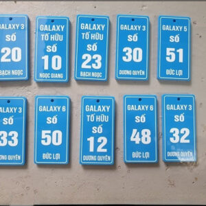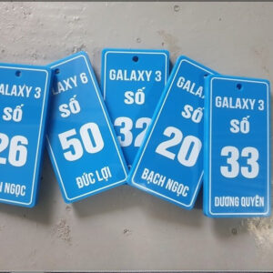 Móc khóa số phòng khách sạn được làm từ chất liệu mica trong suốt, giúp tăng độ bền và khả năng chống trầy xước. Móc khóa được thiết kế hình chữ nhật với màu sắc nổi bật, với viền trắng và có lỗ tròn ở phía trên để dễ dàng gắn vào móc chìa khóa. Mặt trước của móc khóa có màu xanh và chữ in màu trắng nổi bật, giúp khách hàng dễ dàng nhận biết số phòng.