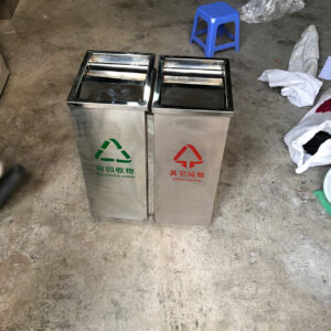 Thùng Rác 2 Ngăn Inox Nắp Lật Có Gạt Tàn – Tiện Ích Và Hiện Đại