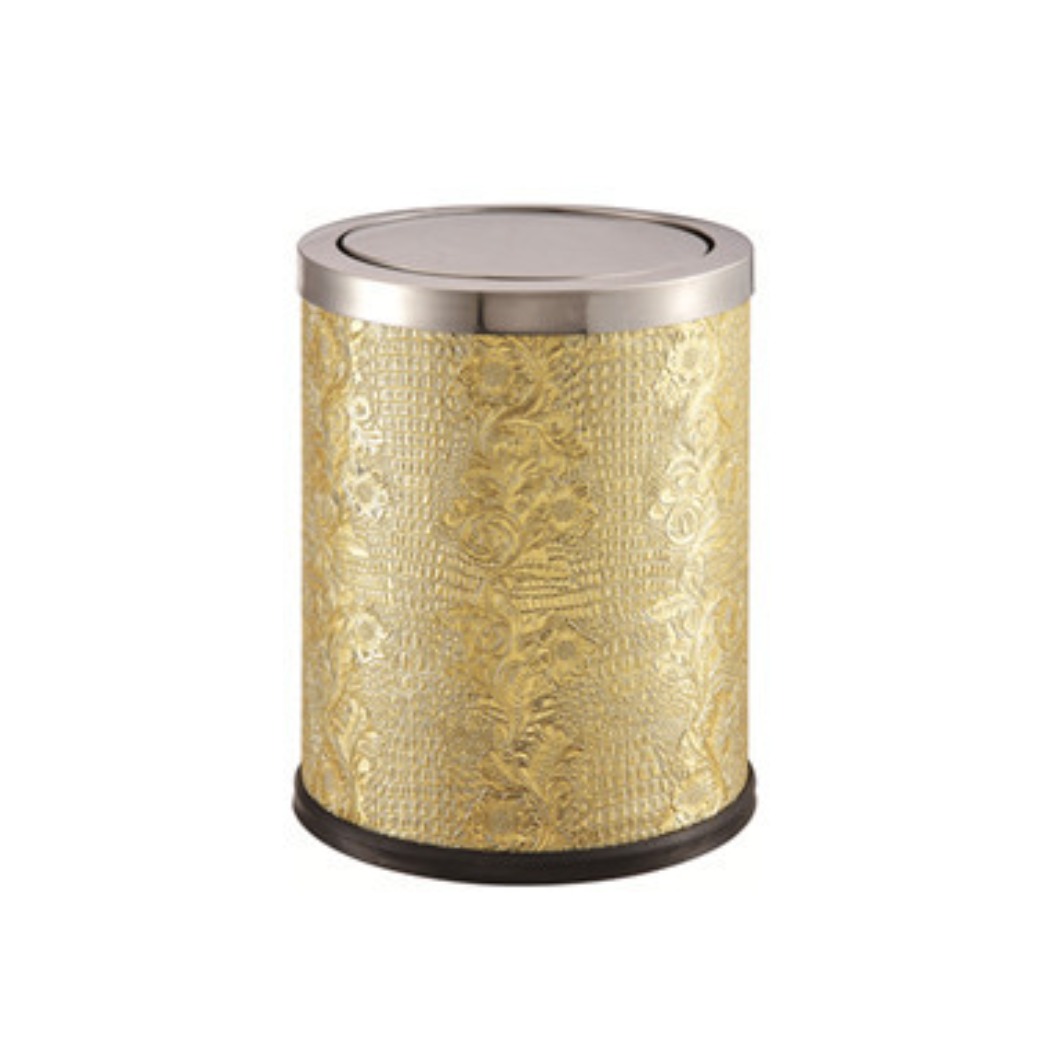 Thùng Rác Bọc Giả Da Màu Vàng Ø25