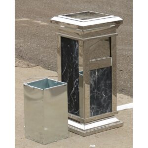 Thùng Rác Đá Hoa Cương Đen Inox Trắng