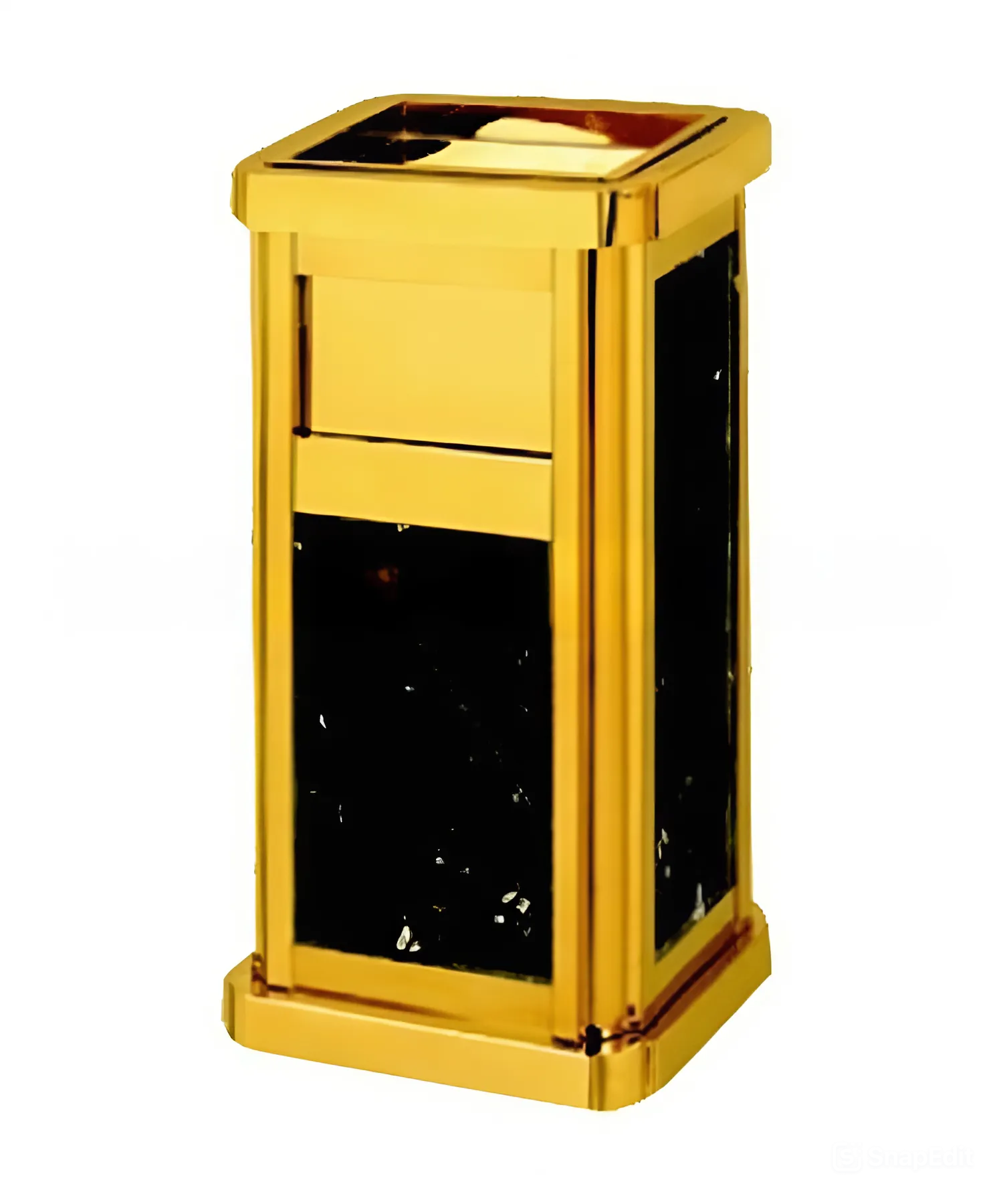 Thùng Rác Đá Inox Vàng Đá Đen Có Gạt Tàn