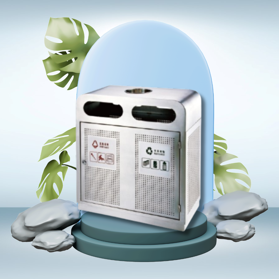Thùng Rác Inox 2 Ngăn Có Gạt Tàn