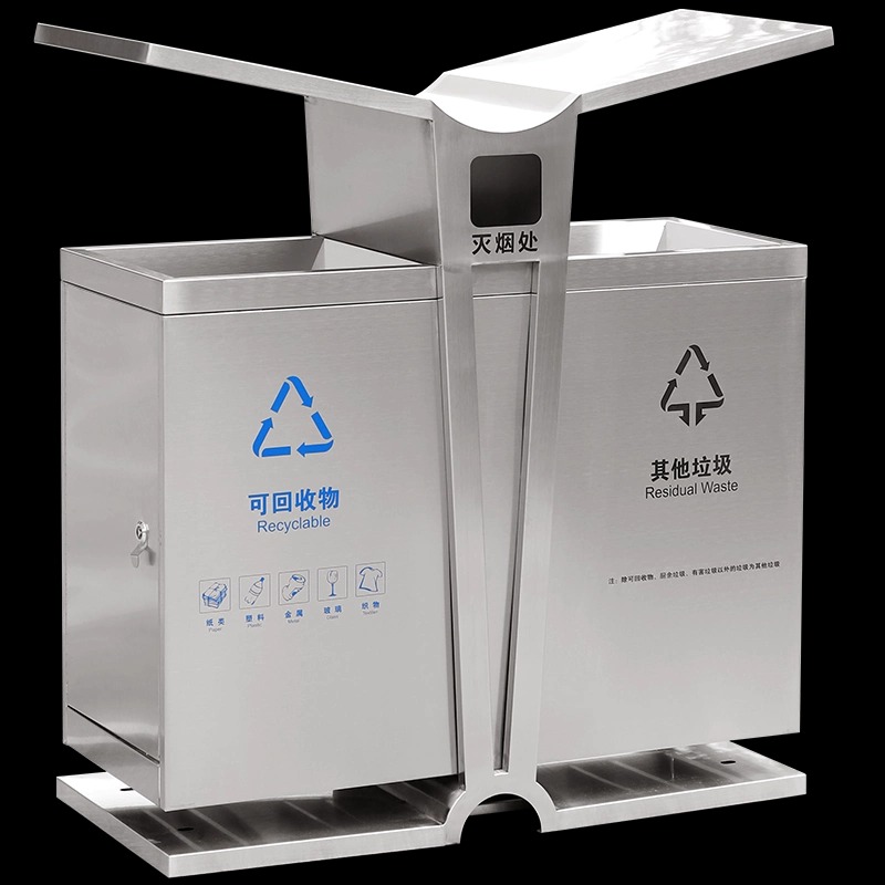 Ứng Dụng Rộng Rãi Thùng Rác Inox 2 Ngăn Có Gạt Tàn