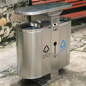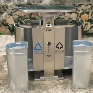 Thùng Rác Inox 2 Ngăn Có Gạt Tàn
