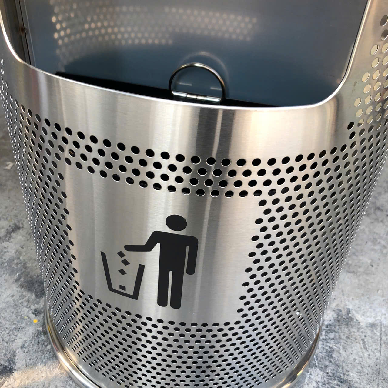 Thùng Rác Inox Bán Nguyệt Có Gạt Tàn Thuốc Lá