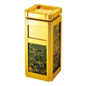 Thùng Rác Inox Mạ Vàng Đá Đen Có Gạt Tàn – Đỉnh Cao Của Sự Sang Trọng Và Tiện Ích