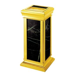 Thùng Rác Inox Mạ Vàng Đá Đen Có Gạt Tàn – Sự Sang Trọng Và Tiện Ích Kết Hợp