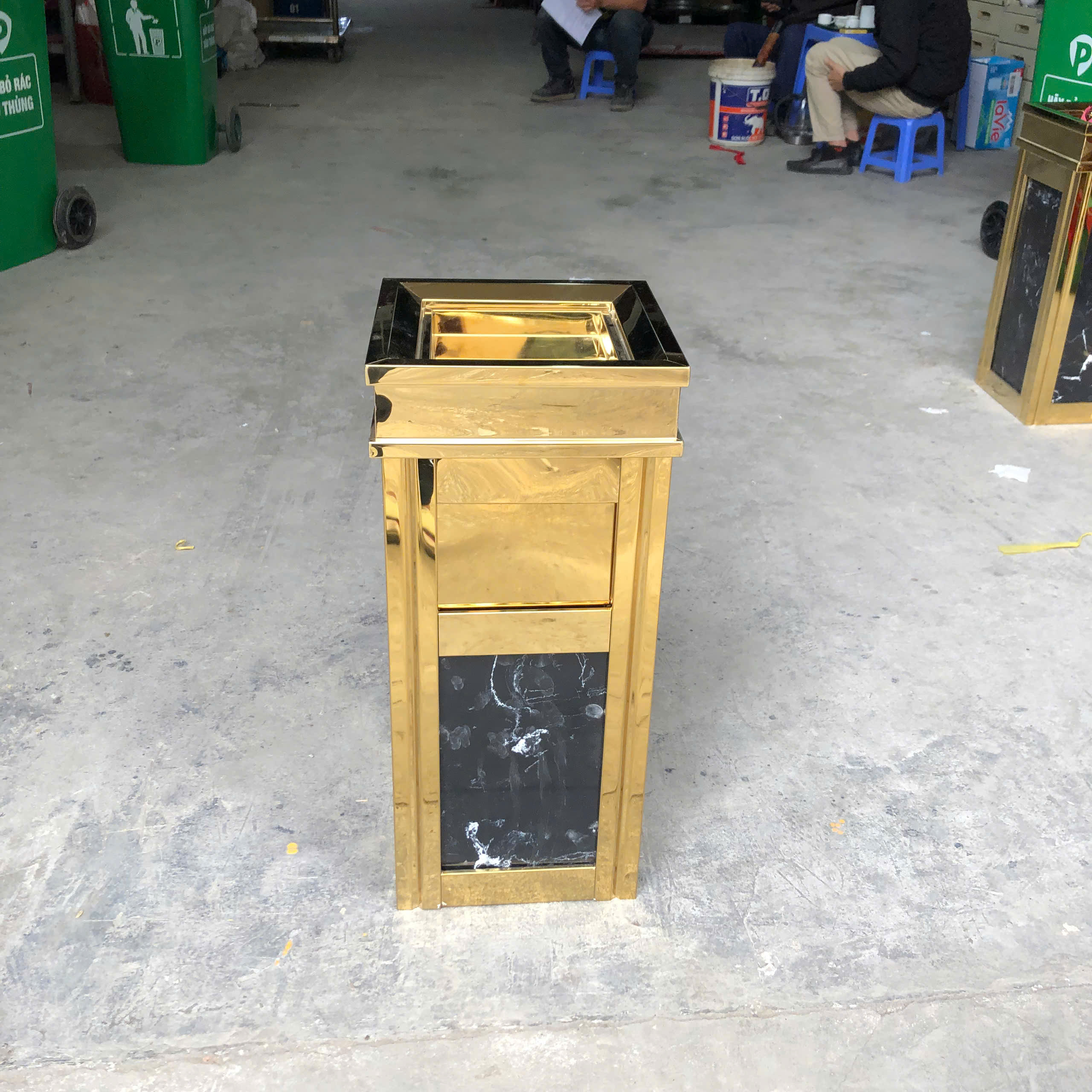 Ứng Dụng Rộng Rãi Thùng Rác Inox Mạ Vàng Đá Đen Có Gạt Tàn