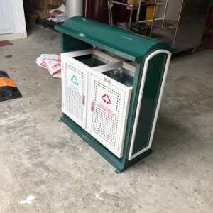 Thùng Rác Ngoài Trời Thép Sơn Xanh Trắng – Bền Bỉ Và Hiện Đại