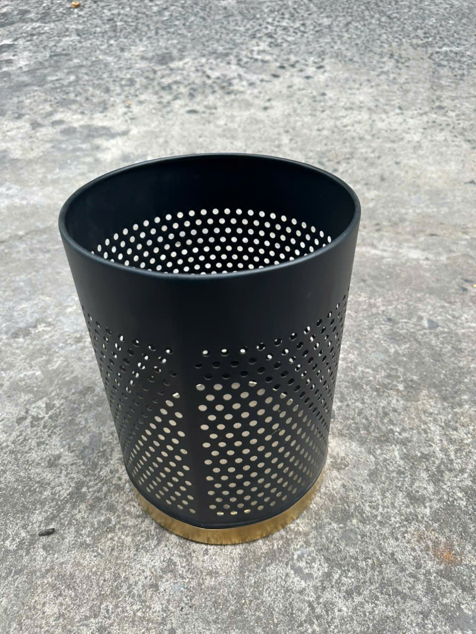 Thùng Rác Sơn Đen Đế Inox Mạ Vàng Ø22 – Điểm Nhấn Sang Trọng Cho Không Gian Hiện Đại