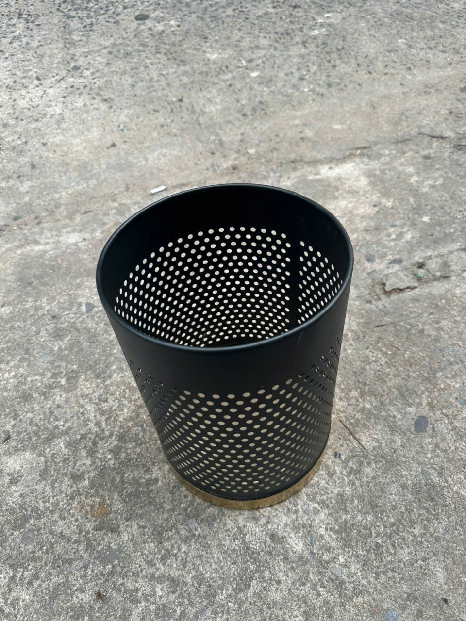 Thông Tin Chi Tiết Sản Phẩm Thùng Rác Sơn Đen Đế Inox Mạ Vàng Ø22