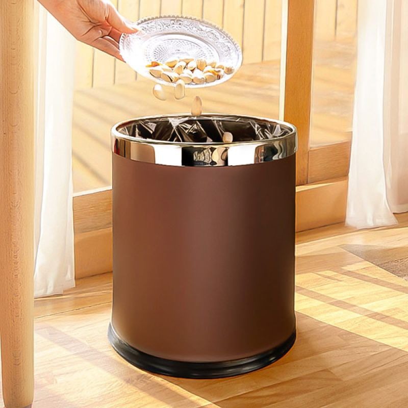 Thùng Rác Thép Sơn Nâu Viền Inox Trắng Ø22 – Sang Trọng, Bền Bỉ, Và Tiện Lợi