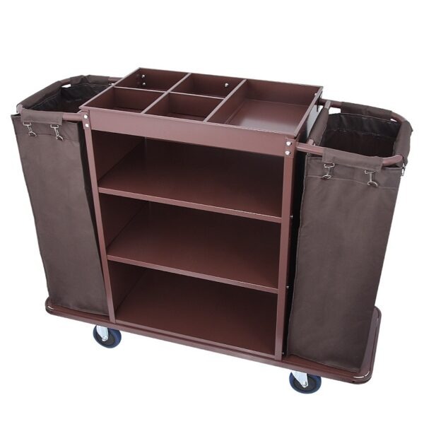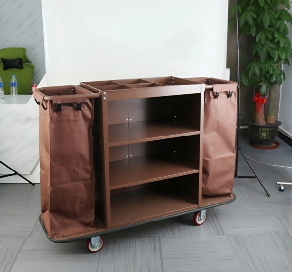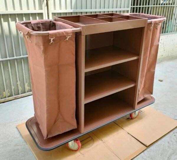 Xe đẩy chắc chắn, hai túi rộng rãi chứa được nhiều đồ, rất phù hợp cho công việc dọn buồng phòng tại khách sạn.