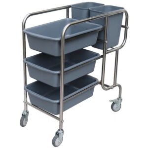 Xe đẩy thu gom bát đĩa nhà hàng là một công cụ không thể thiếu trong các khách sạn và nhà hàng hiện đại. Với thiết kế chắc chắn và chịu được sức nặng lên đến 250kg, xe đẩy này giúp nhân viên dễ dàng thu gom và vận chuyển bát đĩa, đồ dùng ăn uống sau mỗi bữa tiệc hoặc bữa ăn của khách hàng, giữ cho khu vực ăn uống luôn sạch sẽ và gọn gàng.