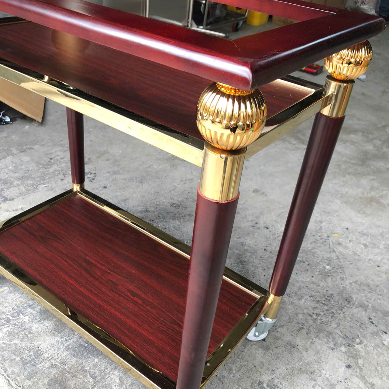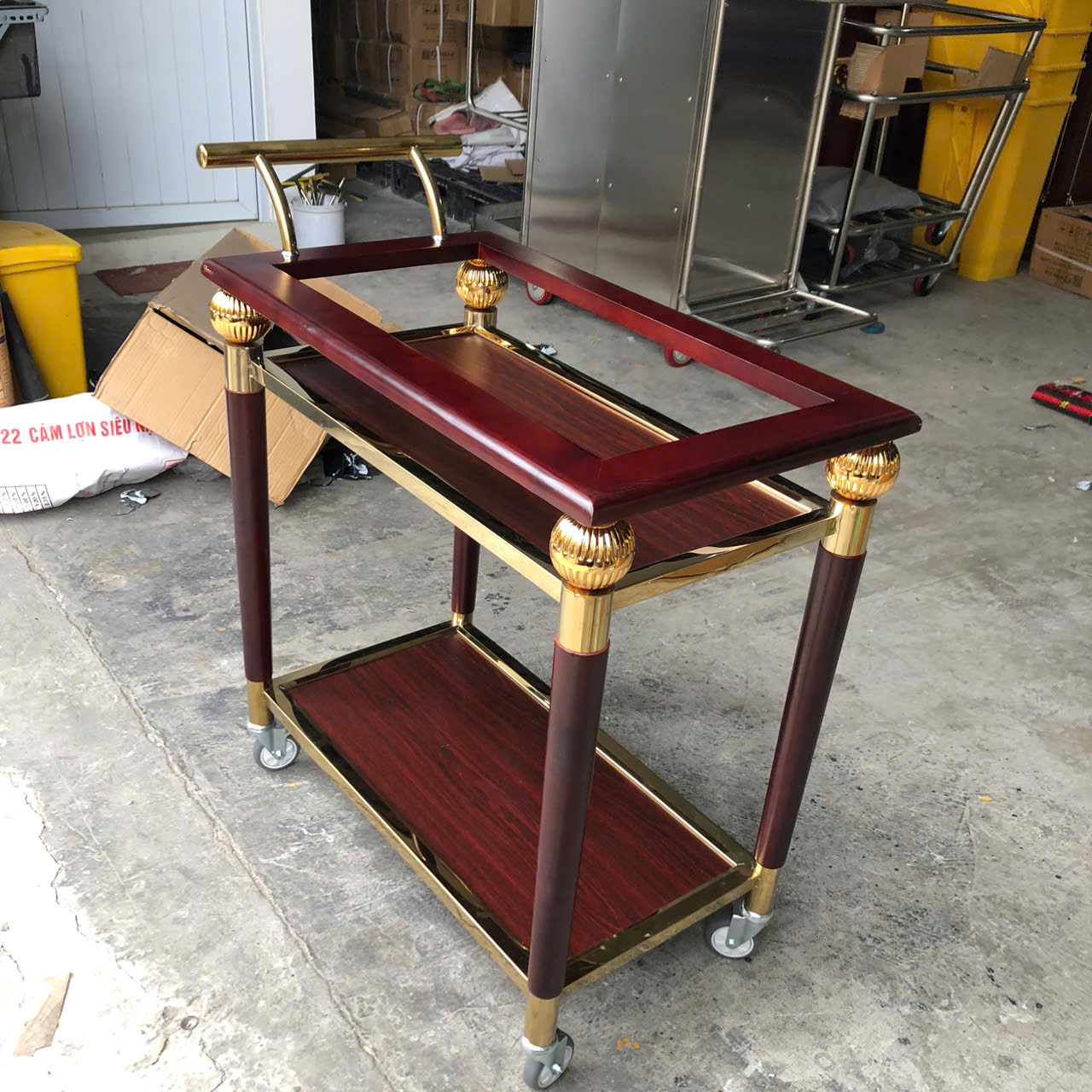 Xe Đẩy Phục Vụ Rượu Inox Mạ Vàng Cao Cấp