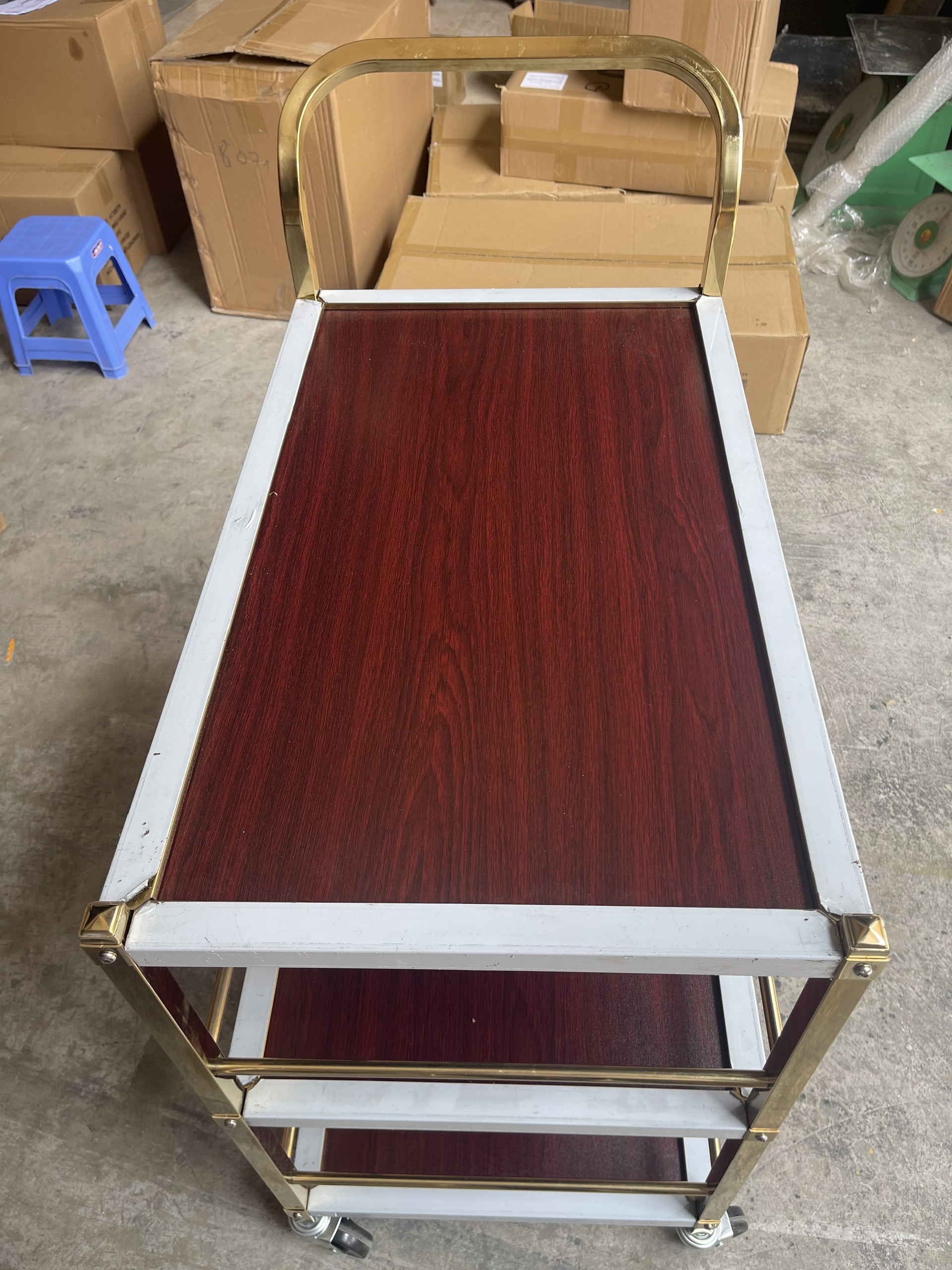 Xe Đẩy Phục Vụ Rượu Khung Inox Mạ Vàng 3 Tầng