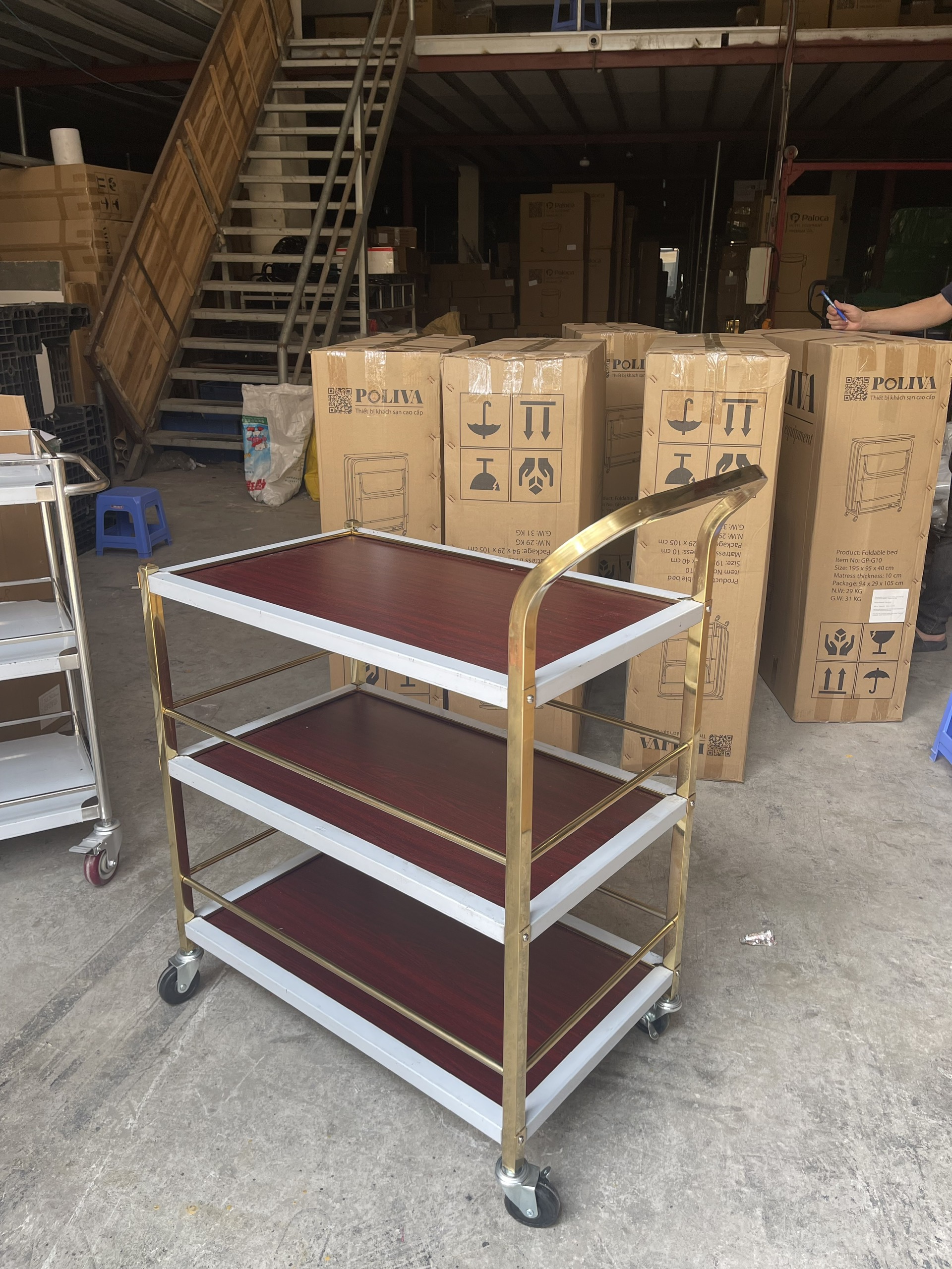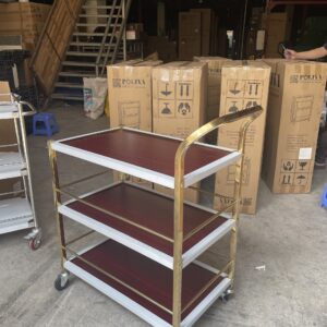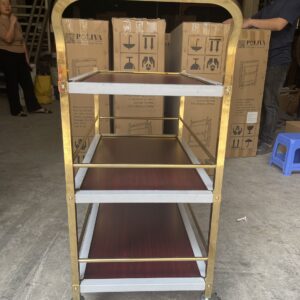 Thông số sản phẩm Xe đẩy phục vụ rượu khung inox mạ vàng 3 tầng